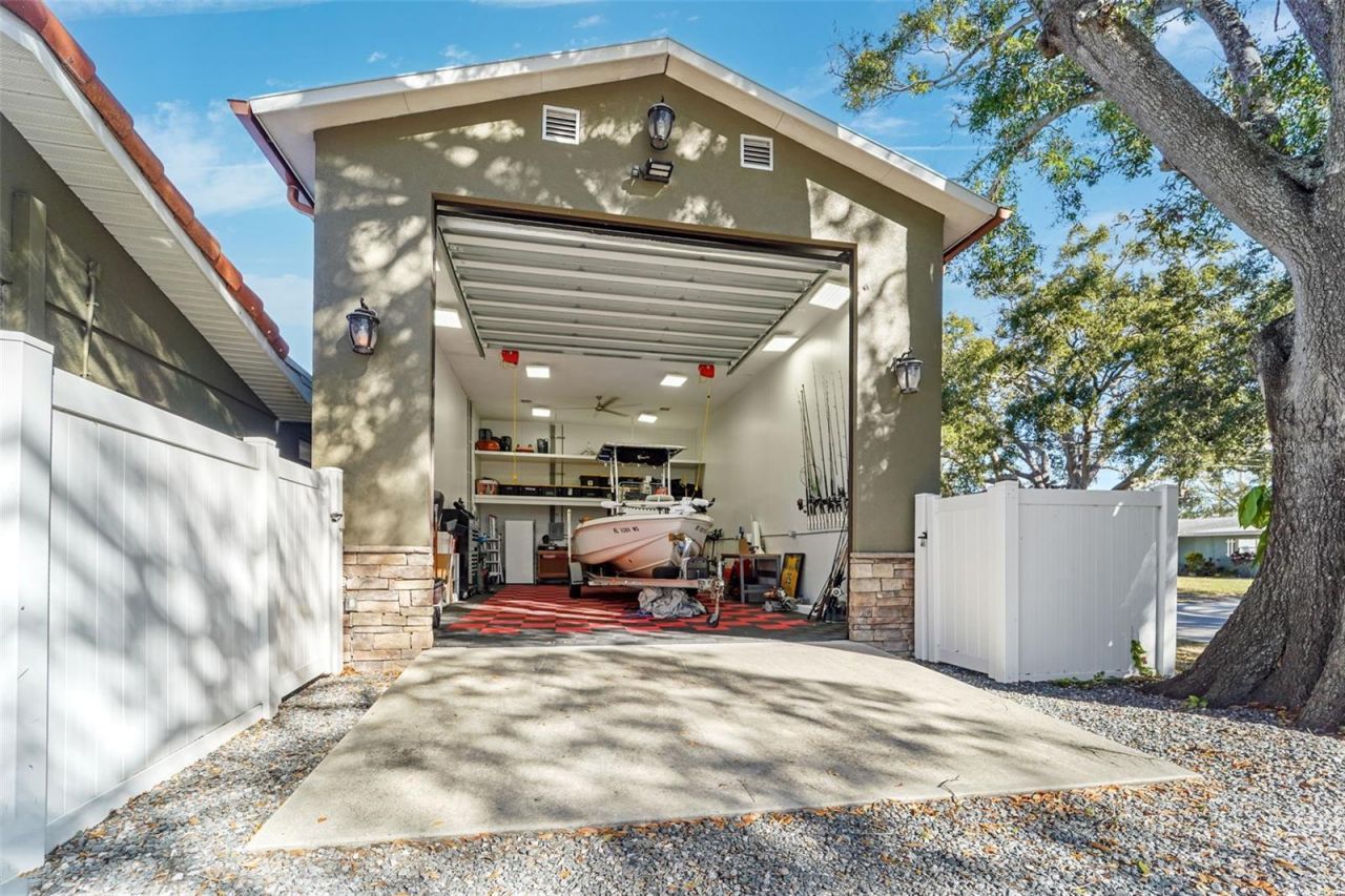 The house is impressive, we will get to that. The star of this property is the outbuilding setup:Massive 22' x 36' detached garage - big enough for the toys, the tools, the projects, the 'I'll get to it later pile... and still have room to work. Full power with multiple hook up points. If thats not enough, a second 18' x 11' detached workshop with water is the perfect dedicated space for woodworking, detailing, hobbies, storage, or running your side hustle. Full power here too.Now the house: this is a custom-built home, designed with function and style. Floors to baseboards, lighting and countertops it's high-end, luxury meets country meets sit down and feel at home.Absolute oasis in the primary. Built-in ceiling speakers for surround sound, a recessed TV, and a slick custom barn-door setup that hides a closet zone with LED lighting and a clean, finished look. Every detail feels intentional. Including the extra large gun safe.Bedrooms 2 and 3 both are comfortable, functional, and ready for queen setups, with new closets and LED lighting so it actually feels upgraded - not 'we painted it and called it a day.Laundry room with shelving and cabinets + attached single car garage just in case you run out of storage in your outbuildingsAll high end bathrooms in the main house that feel like boutique hotel quality from fixtures to finishes. Plus a half bath with its own flair off the screened in porch out back.This place was built to live in - and entertain in. Bottom line: if you want a home that's fully updated, low-maintenance, and luxury-minded - with a detached garage and workshop that actually let you do things - this one checks boxes most homes can't even offer.10 minutes to the best Pinellas beaches, 5 minutes to St. Pete-Clearwater Airport, and about 20 minutes to Tampa International - sitting on a corner lot with a circular driveway that makes coming and going, and lets be honest, putting your equipment into the massive detached garage - easy.